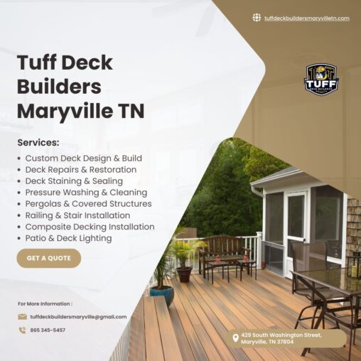 Searching for reliable deck builders near me? Tuff Deck Builders Maryville specializes in crafting beautiful, long-lasting decks that add comfort and value to your home. As a trusted deck building company serving Maryville, Armona, Wimbledon, Twelve Oaks, Alnwick, West Maryville, Springfield Westfields, Eagleton Village, Woodmont Addition, Willard Addition, West Springbrook, Wildwood, Westmoreland Heights, West Hills, and Binfield, we combine licensed and insured expertise with top-quality materials like composite, cedar, and treated lumber. Our team is dedicated to delivering decks that are both functional and stylish, built to withstand Tennessee’s changing weather. Contact us today for a free quote—serving Maryville and surrounding areas. Call now to discuss your deck installation in Maryville and nearby towns. Let’s start building your dream deck today!