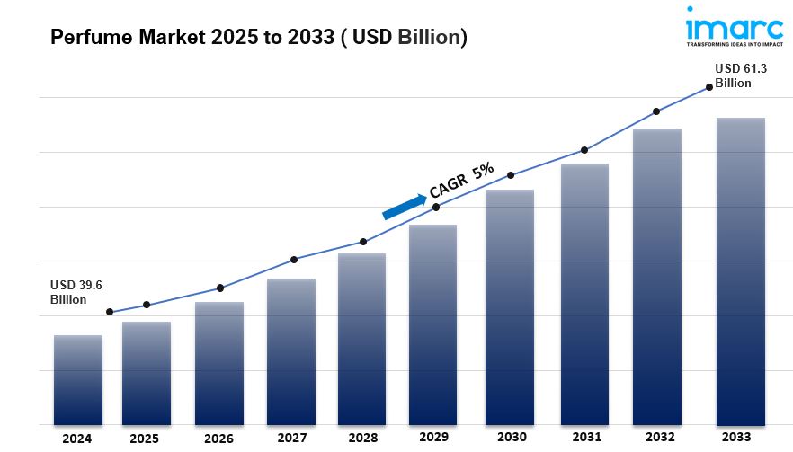 The global perfume market size reached USD 39.6 Billion in 2024. Looking forward, IMARC Group expects the market to reach USD 61.3 Billion by 2033, exhibiting a growth rate CAGR of 5% during 2025-2033. Brazil currently holds the largest perfume market share. This is due to changing trends and preferences, growing levels of disposable incomes, rapid e-commerce and online retail, rising innovation in products and marketing, and emerging markets and globalization.