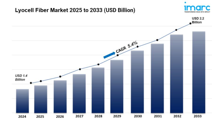The global lyocell fiber market size was valued at USD 1.4 Billion in 2024. Looking forward, IMARC Group expects the market to reach USD 2.2 Billion by 2033, exhibiting a CAGR of 5.4% during 2025-2033. Asia Pacific currently dominates the market, holding a significant market share. The market is experiencing steady growth driven by the rising demand for sustainable and eco-friendly textiles, increasing consumer awareness about the environmental impact of synthetic fibers, and technological advancements in fiber production.