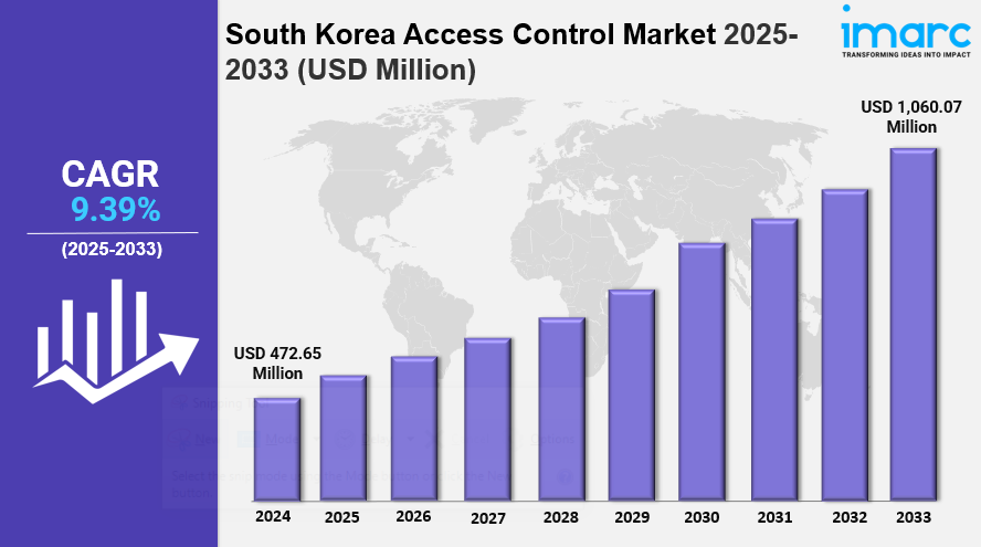 The South Korea access control market was valued at USD 472.65 Million in 2024. Looking forward, IMARC Group estimates the market to reach USD 1,060.07 Million by 2033, exhibiting a (CAGR) of 9.39% from 2025-2033.