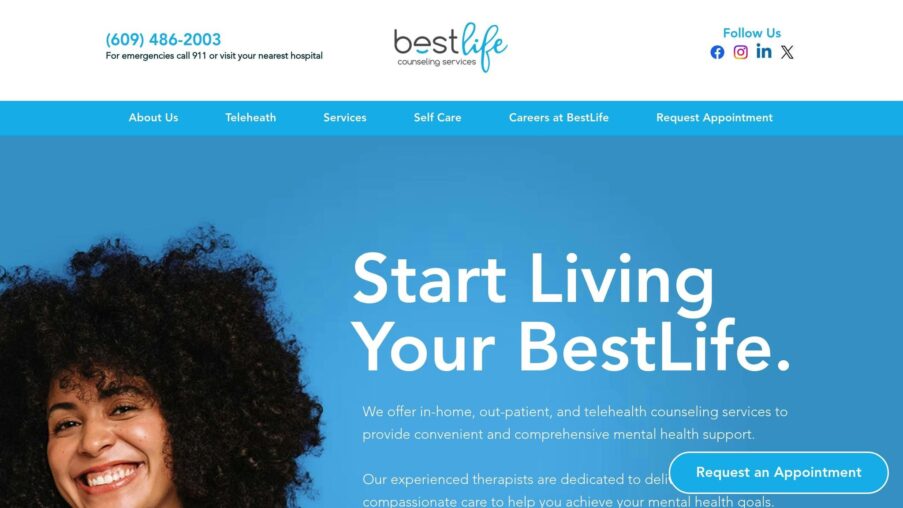 BestLife Counseling is a New Jersey based outpatient and telehealth mental health practice serving individuals, couples, and families throughout Cape May County, including Cape May, Wildwood, Rio Grande, Middle Township, and surrounding communities. We provide evidence based therapy for children, adolescents, adults, and couples, treating anxiety, depression, trauma, ADHD, mood disorders, behavioral concerns, relationship issues, and life transitions. Our licensed clinicians offer individual therapy, couples therapy, family therapy, group services, school based services, and intensive in community support, with specialties including EMDR, CBT, DBT, and trauma informed care. BestLife Counseling offers secure telehealth across New Jersey and accessible outpatient services in Cape May County, focused on high quality care and lasting outcomes.