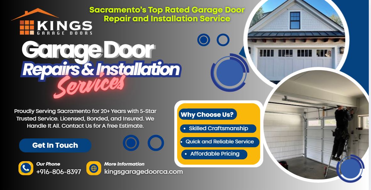 Kings Garage Door Repair & Installation Kings Garage Doors Repair and Installation – Sacramento & Placer County’s trusted experts for residential & commercial garage door repair, installation, replacement & smart opener services. Licensed, insured family-owned business offering same day service, free estimates, energy-efficient insulated doors, and transparent pricing across Citrus Heights, Elk Grove, North Auburn, […]